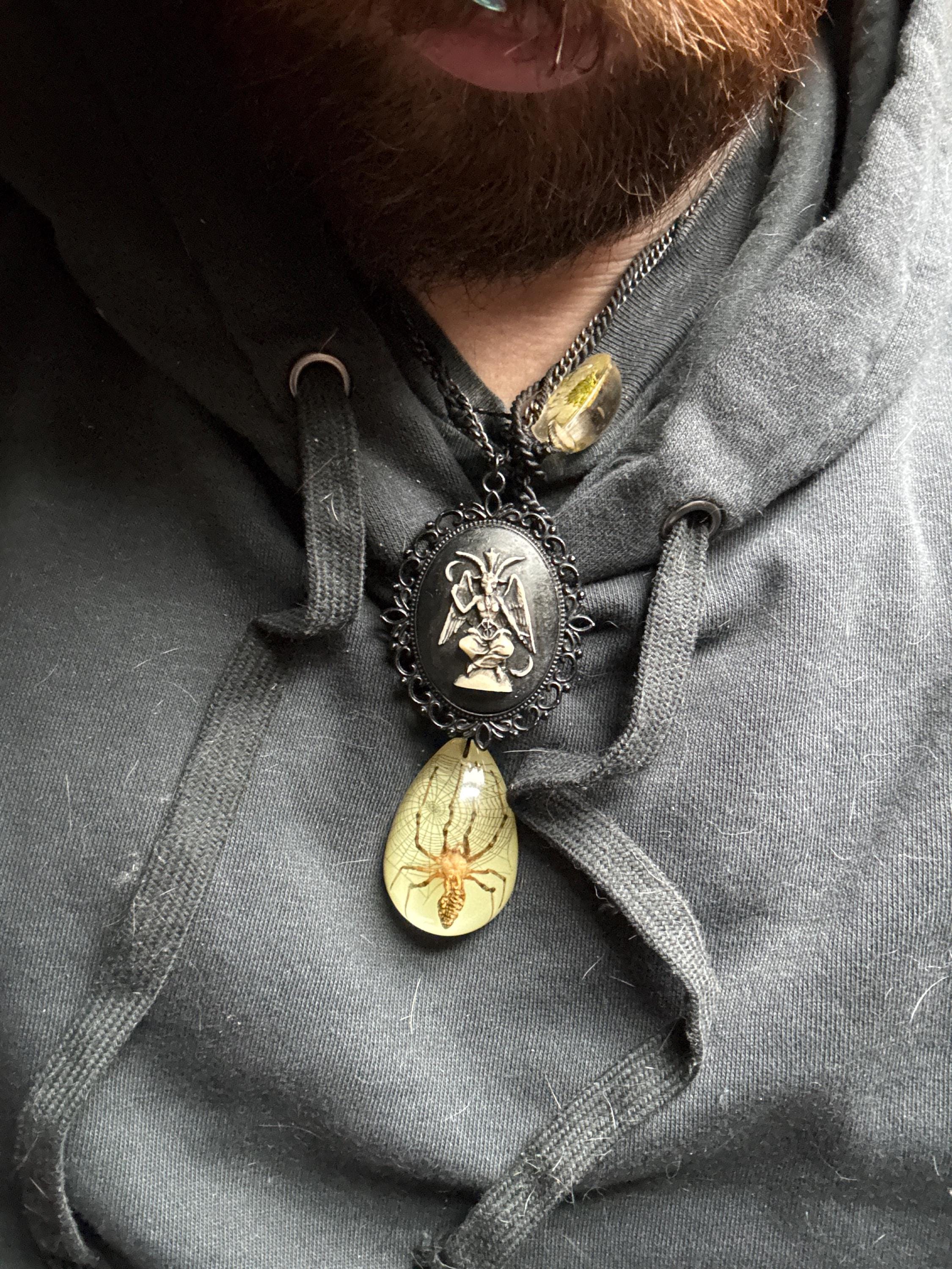 https://www.etsy.com/listing/262395675/baphomet-occult-unisex-bronze-or-black?ref=shop_home_active_47&frs=1Each necklace is hand made by me! The resin Baphomet is meticulously painted with strict attention to detail. The cameo is set in a 30x40mm setting.